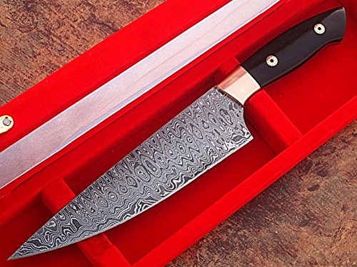 CUSTOM MADE DAMASCUS STEEL FULL TANG 12" KITCHEN CHEF KNIFE WITH BUFFALO HORN WITH SOLID COPPER BOLSTERS HANDLE WITH PRESENTATION BOX (BDM-844)