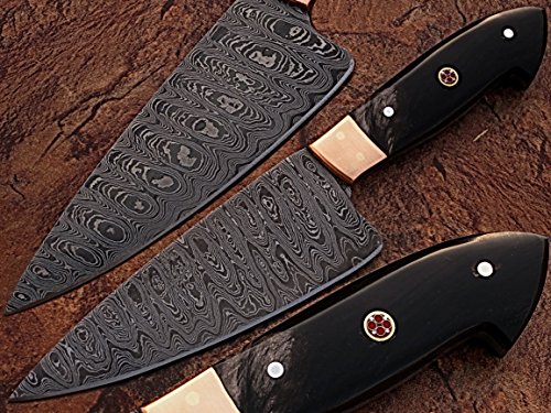 All images of CUSTOM MADE DAMASCUS 10" KITCHEN CHEF KNIFE WITH BUFFALO HORN WITH COOPER BOLSTER & MOSAIC PIN HANDLE (BDM-760)